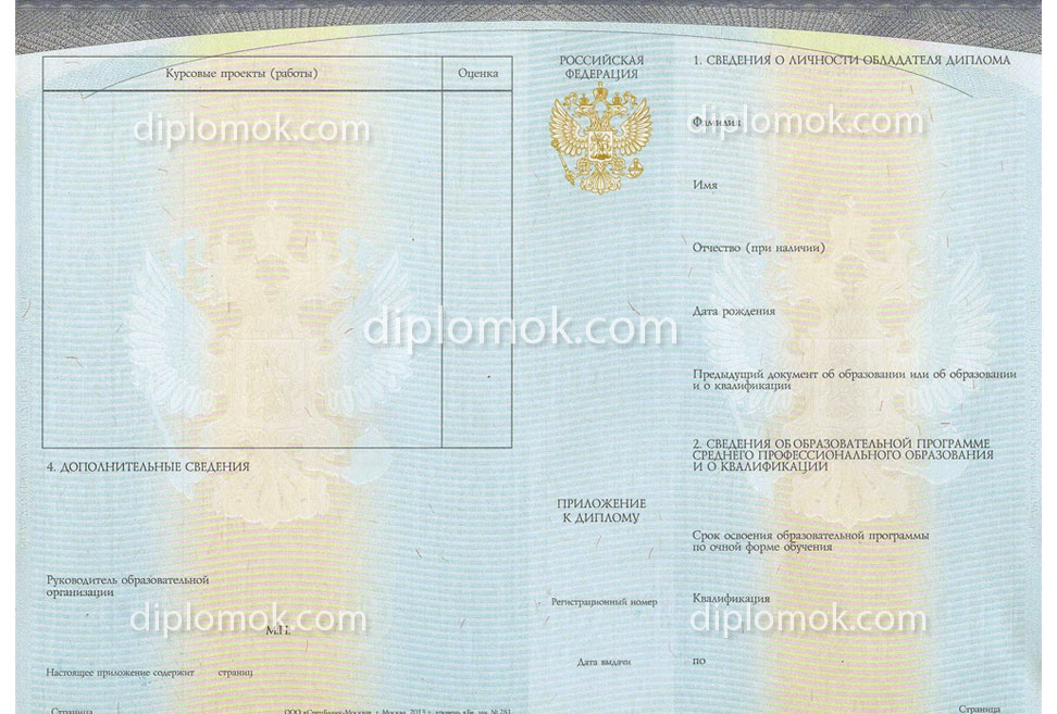 Диплом ССУЗа нового образца заполняются в соответствии с приказом Минобрнауки от 25 октября 2013 года «Об утверждении Порядка заполнения, учета и выдачи дипломов о среднем профессиональном образовании и их дубликатов», заверяются подписями должностных лиц, а также печатью выбранного Вами техникума или колледжа.
